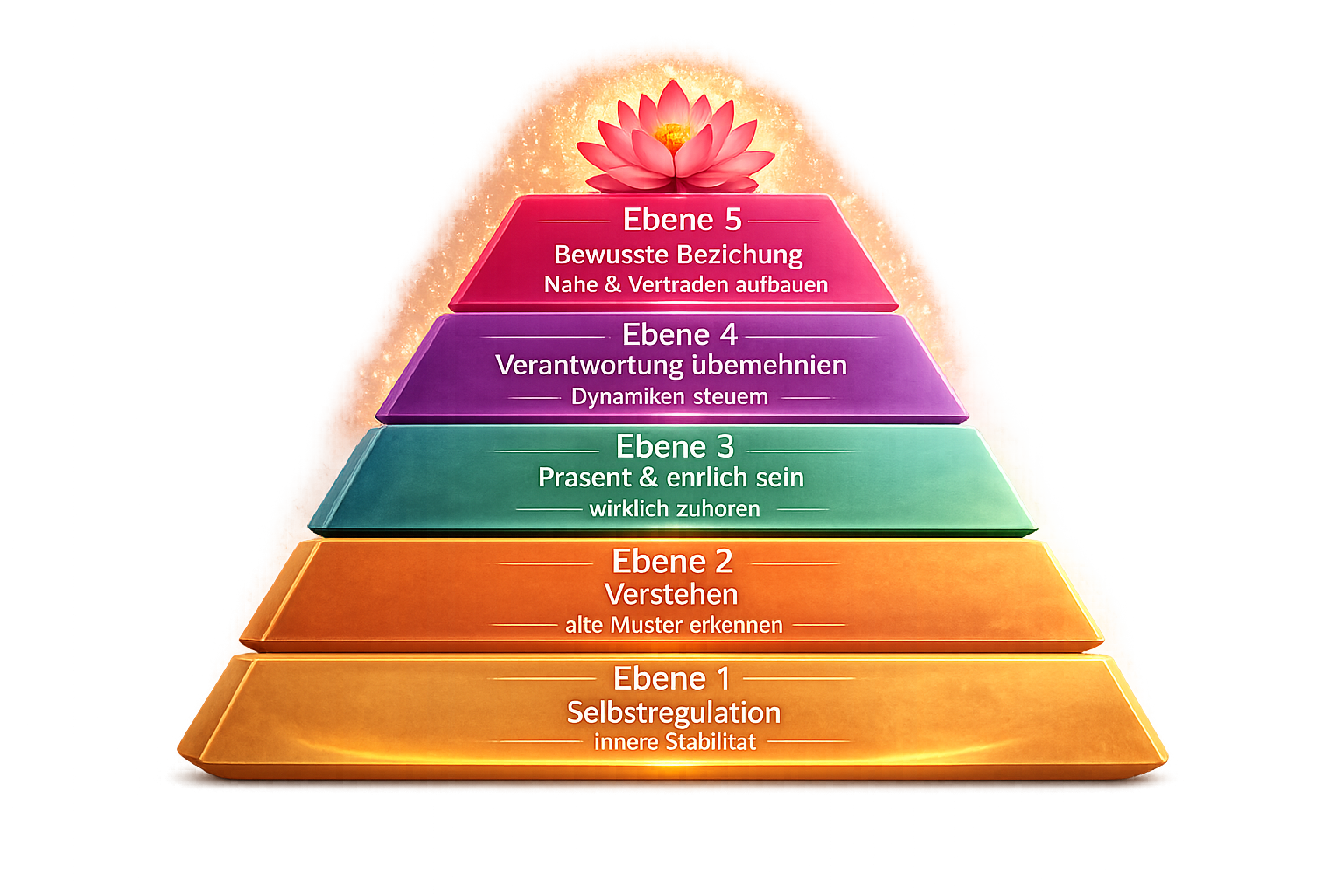 Aus diesen Erfahrungen entstand mein Ansatz der traumasensiblen Beziehungsentwicklung – die 5 Ebenen erfüllter Beziehungen: